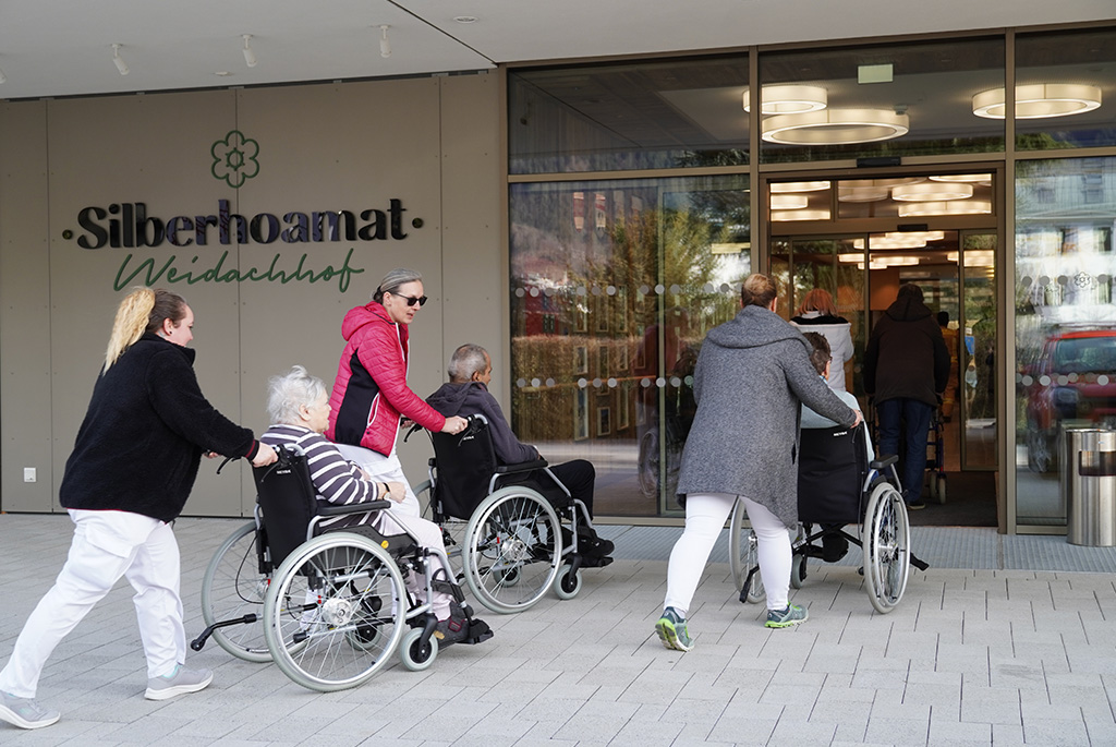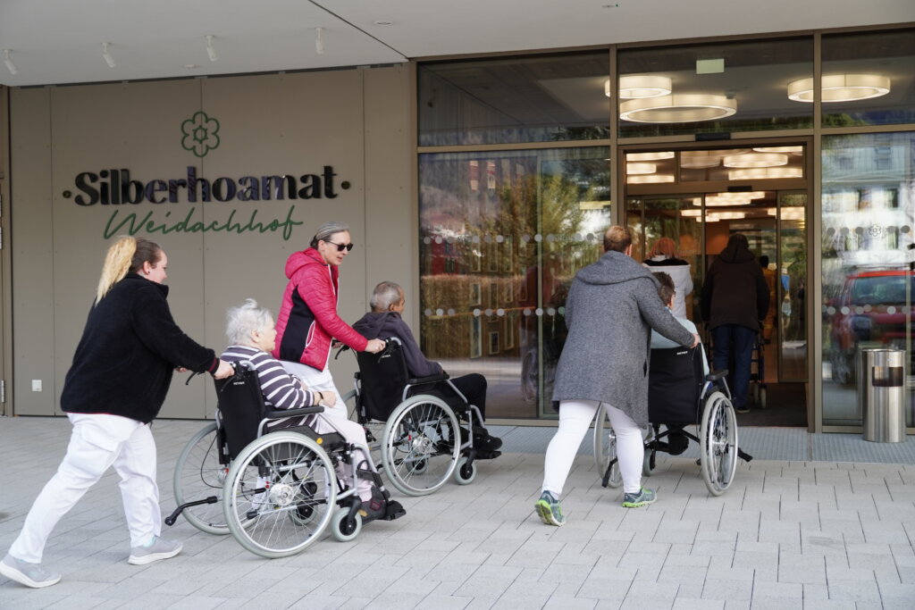 Mit der heutigen Wiedereröffnung kümmern sich künftig etwa 50 Pflegekräfte, 18 professionelle AlltagsbetreuerInnen sowie 8 Mitarbeiterinnen im Hausdienst um die zunächst sechs Hausgemeinschaften mit insgesamt 80 BewohnerInnen. Voraussichtlich im April wird die Silberhoamat Weidachhof um eine weitere Hausgemeinschaft mit 13 BewohnerInnen ergänzt. Im Mittelpunkt steht dabei stets der Mensch – nicht nur die BewohnerInnen, sondern eben auch die Teammitglieder: Flache Hierarchien sorgen dafür, dass die MitarbeiterInnen in Entscheidungen immer mit eingebunden werden.