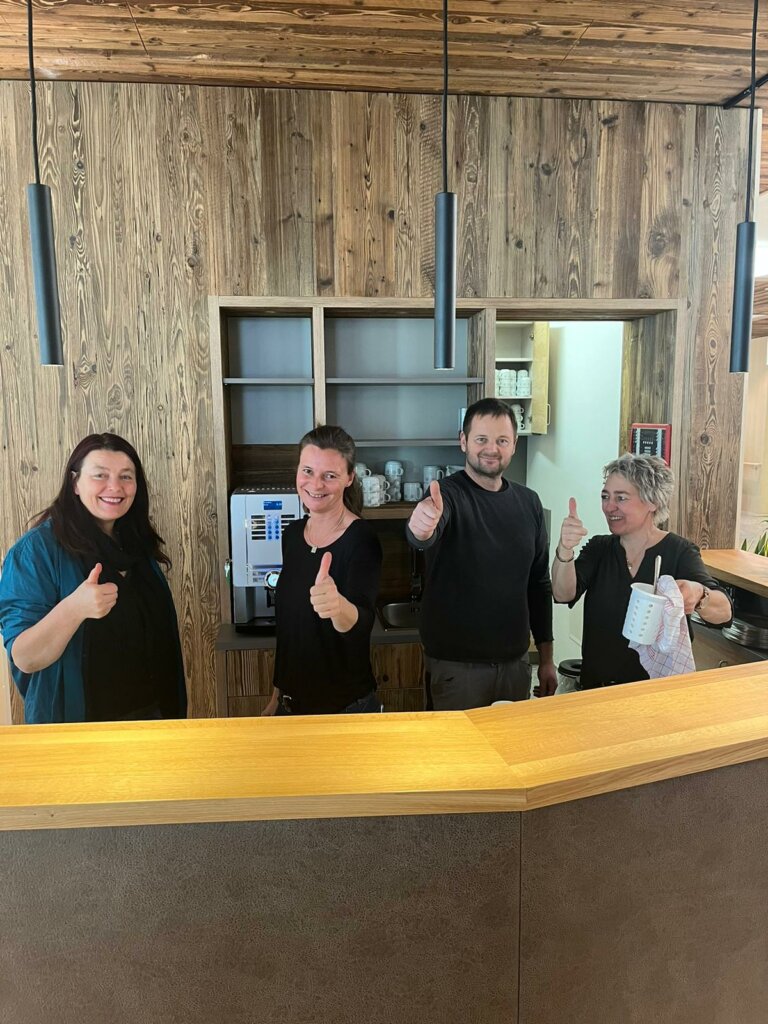 So wurden auch alle Neubaupläne stets im Team besprochen, Aufgaben und Maschinen selbst ausgewählt – schließlich sind die wahren Experten direkt im Haus. Wie wichtig ihre Expertise ist, zeigte sich gerade bei der großen Herausforderung, vor die der Umbau alle Beteiligten stellte. Schließlich musste ein kompletter „Haushalt“ neu gegründet und die Silberhoamat Weidachhof von einem Haus mit externer Versorgung zum Selbstversorger umgestellt werden. Von der Großwäscherei über die neuen Hausgemeinschaften bis zum neuen Café oder dem Friseurraum musste alles neu geplant, vorbereitet und organisiert werden. Und nicht immer lief alles glatt: Preissteigerungen durch den Krieg in der Ukraine, eingeschränkte Materialverfügbarkeit und ein Mangel an Arbeitskräften stellten die Verantwortlichen auf harte Proben.